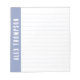 Personalised lined notepad with your name in white letters written across the side against a periwinkle blue.