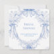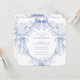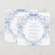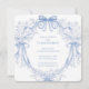 The design features a graceful symmetrical border of soft periwinkle blue florals and flowing bows, creating a refined wreath-style frame around a clean centre space perfect for your custom wording. Inspired by traditional letterpress artistry, the illustration has a delicate etched look printed on a warm ivory background, giving it a luxurious heirloom feel.