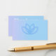 Customise this trendy gradient business marketing card. This is perfect for an e-commerce business such as a boutique, Etsy store, or any other small business. It features the phrase "Thank you for your business" and has customisable text to explain further details. Reverse side has custom wellness-inspired, wholesome lotus flower logo that can be updated or left as is. This product expresses customer appreciation and encourages shoppers to follow your business on social media with the information provided next to the Facebook, Instagram, and YouTube contact icons.