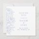 Blue Peonies Wedding Save the Date. Formal Invitation to Follow on the back. Simple. Modern. Periwinkle blue peonies line art. Blue Wedding. Periwinkle Wedding. Square Blue Save the Date. White background.