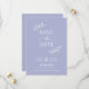 Beautiful minimalistic floral wedding save the date card in a lovely shade of periwinkle blue with white text and hand-drawn floral twigs with leaves and little flowers.