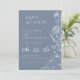 Perfect for couples planning a romantic, garden, or “something blue” inspired wedding, this save the date offers a fresh and airy aesthetic that feels both timeless and unique. The soft periwinkle background paired with light botanical details creates a graceful first impression your guests will remember.