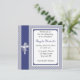 Elegant religious invitation in periwinkle polka dot background with side border and ornate crucifix decorated with butterflies. Invitations are easy to customise and come complete with envelopes and your choice of paper.