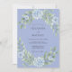 Delicate blossoms in soft periwinkle and verdant foliage create an enchanting botanical archway. This dreamy design evokes a sense of romantic elegance, perfect for a serene celebration. The artistic watercolor style adds a touch of whimsical charm.