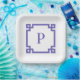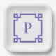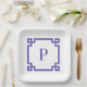 Periwinkle Greek Key Square Border Monogram Paper Plate