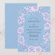 This design features a serene periwinkle blue background adorned with soft watercolor florals. Delicate lavender roses and pale purple hydrangeas are artfully arranged with wispy foliage to create a celestial atmosphere. The cool-toned palette of lilac and cornflower blue evokes a dreamy aesthetic for a seasonal event. This artwork captures the essence of a romantic meadow in bloom.