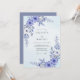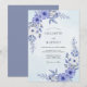 This design showcases delicate periwinkle blooms and soft greenery in a watercolor style. The artistic floral arrangement evokes a gentle, romantic ambiance. The light, airy color palette creates a beautiful backdrop for a special occasion.