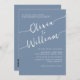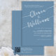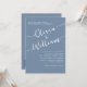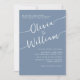 Set the tone for your modern wedding with this minimalist invitation featuring flowing white handwritten script against a soft periwinkle blue background. The clean and romantic design includes classic serif details and a scannable QR code on the back for easy RSVP access. Perfect for spring, summer, or elegant outdoor weddings, this invitation is fully customisable with your ceremony details.