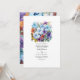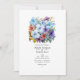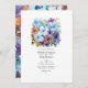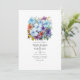 Periwinkle, turquoise, and reddish brown floral wedding invitation. Ideal for a summer wedding. The QR code on the reverse directs to your wedding site where people can learn more and rsvp.