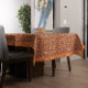A stunning tablecloth featuring a persian carpet print pattern from the 1800s. It features a stunningly intricate damask pattern.