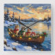 Persian Cat Christmas Boat Holiday Square Wall Clock