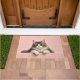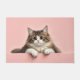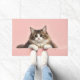 The soft dusty rose pink background adds a warm and elegant touch, perfect for welcoming entryways. Designed with extra space at the top and bottom, it allows easy personalization with names, welcome messages, or custom text—making it ideal for unique cat-themed doormats and thoughtful gifts.