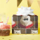 A charming white Persian cat sitsin a striking red, heart-shaped Valentine candy box, elegantly adorned with a sleek black bow tie
