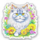 Cute white Persian Cat surrounded by yellow and pink flowers botanical watercolor ai art.