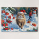 Persian Cat Sitting in Snow with Christmas Hat Jigsaw Puzzle