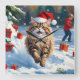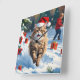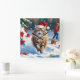 Persian Cat Sitting in Snow with Christmas Hat Square Wall Clock