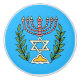 This image was adapted from an antique Persian Jewish tile and features a menorah with a Magen David (Star of David) framed by olive branches. The imperfections of the original, hand-painted image have been preserved.