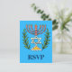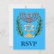 An RSVP card to accompany Bar/Bat Mitzvah invitations featuring the same design. This image was adapted from an antique Persian Jewish tile and features a menorah with a Magen David (Star of David) framed by olive branches. The imperfections of the original, hand-painted image have been preserved.