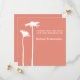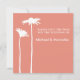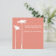 This minimalist save the date invitation features a silhouette of a pair of white daisies on a peach persimmon background, a simple two-toned colour scheme for a summer or autumn wedding.