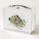 This is a standard metal lunchbox that appears to work just fine. We designed this box ourselves with an uploaded photo and custom text on the front and back. It looks absolutely beautiful except the front of the lunchbox is not centered like it shows in the photo. The print borders don't align with the inset flat part of the box where the preview photo online showed it perfectly centered in there. The back looks nice and centered though.