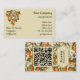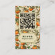 Persimmons illustration. Fruits, flowers and leaves on branches. Custom background colour. Many customisable text fields at front side. Seamless pattern, social ID icons and QR code at the back side.