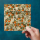 Persimmons illustration. Fruits, flowers and leaves on branches. Seamless pattern. Custom text.
