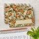 Persimmons illustration. Fruits, flowers and leaves on branches. Seamless pattern. Custom background colour. Custom text.