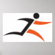 A black and orange icon symbol of a person running. This design looks really effective on these Poster