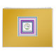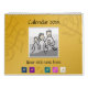 A quite simple personal calendar, yet with ornamental decor and a certain shine to the solid frame colours. Add your monthly photo and text. The wide frames are either golden, silver, pink, purple, teal or blue. Look for other versions with fewer colour alternatives. There is one square photo and one text line for each month. If you want more text it's possible to enter a regular line break. The front page photo can be a 13th photo, or you can reuse one of the other photos. Text and photos can easily be customised.