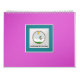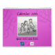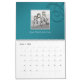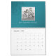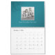 A quite simple personal calendar, yet with ornamental decor and a certain shine to the solid frame colours. Add your monthly photo and text. The wide frames are either pink, teal or silver. Look for other versions with fewer colour alternatives. There is one square photo and one text line for each month. If you want more text it's possible to enter a regular line break. The front page photo can be a 13th photo, or you can reuse one of the other photos. Text and photos can easily be customised.