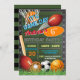 Featuring an All Star design that blends the excitement of various sports, from basketball and soccer to baseball and more, this invitation sets the tone for a day filled with athletic fun and celebration. The vibrant colours and playful graphics make it an engaging and eye-catching choice for your special occasion.