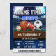 The design features a vibrant and energetic display of various sports elements, from basketballs to soccer balls, creating an exciting backdrop for a sports-themed celebration. With a personalized touch, you can easily customize the invitation with important details like the date, time, and venue, making it a perfect fit for your unique celebration.