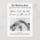 This proposal newspaper postcard is the perfect way to ask "Will you be my Personal Attendant?" Featuring a black and white minimalist style with the masthead "The Wedding Post" and a photograph of women making a champange toast (you can keep this photo, or swap it for one of your own!).  With an elegant, simple design it adds a personal touch to your bridal party proposals. It's easy to customise with your friend's name and a personal message.