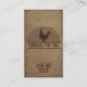 Personal Chef Business Card with burlap background and rooster graphic. Two sided card with space to add website, email, and other personal information on back. Perfect for a personal chef, executive chef, culinary, and caterer.
