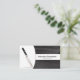 Black leather sets off the background of this business card design featuring a photo placeholder on the left with template name and title on the right. The back includes a coordinated design and colours with text fields for the business name and details. Keep or replace the placeholder photo with your vertical format photograph and replace the QR code with yours. Fill in the template fields or click customise to select a font style, size, and colour you like.
