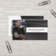 Black leather sets off the background of this business card design featuring a photo placeholder on the left with template name and title on the right. The back includes a coordinated design and colours with text fields for the business name and details. Replace the placeholder photo with your vertical format photograph and replace the QR code with yours. Fill in the template fields or click customise to select a font style, size, and colour you like.The placeholder photo is courtesy pexels.com.