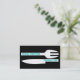 Personal chef minimalist business cards black white, featuring a white knife and a fork on black background and text in turquoise. Perfect for head cooks, personal chefs, chef de cuisine. tba