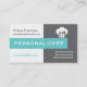 Personal chef minimalist eye-catching grey, white, aqua business cards featuring a white chef cap - toque with a fork, spoon and knife on grey background and the text “Personal Chef” in an aqua blue band. Perfect professional design for head cooks, personal chefs, culinarians, chef de cuisine, executive chef, chef manager.