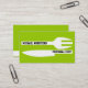 Personal chef minimalist business cards lime green white, featuring a white knife and a fork on lime green background and text in black. Perfect for head cooks, personal chefs, chef de cuisine.