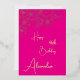 This simple minimalist birthday card bright pink and rose gold with a graphic drawing of flowers in the top left corner can be personalised with the person's name and age. The rose gold foil allows the name and age to stand out. This card has been set for the 46th birthday to illustrate that the card can be used for a range of ages. It is never easy to find a card for those in between ages. The design is simple and elegant with rich colours which, with the age and name, will make it a very special card for the receiver