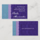 This purple damask design business card with its ornate signature is a pretty choice for your personal business card. Design tip: If you have a long name, you might need to re-size your text.