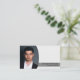This business card design features a photo placeholder with template name and occupation. The back includes text fields for the business name, details and qr code. Replace the placeholder photo with your photograph on the front and your QR code on the back. Fill in the personalise fields or click customise to select a font style, size, and colour you like. Have the QR code link send potential clients to your website, client reviews, project photos or another specific link. The placeholder photo is courtesy pexels.com.