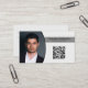 This business card design features a photo placeholder with template name and occupationand your QR code. The back includes text fields for the business name and details . Replace the placeholder photo with your photograph and the QR code placeholder with yours. Fill in the template fields or click customise to select a font style, size, and colour you like. Have the QR code link send potential clients to your website, client reviews, project photos or another specific link. The placeholder photo is courtesy pexels.com.