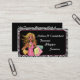 Savvy personal shopper business card with black background, zebra print & savvy shopper gal.