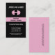 A graphically bold business card for a personal trainer, gym owner or coach with a feminine flair. A silhouette of a bright pink dumbbell stands out against the rich black pinstripe background. Your title or business name sits in the striking pink bar underneath with your contact information below against rich black. Add any extra information on the attention-getting back. Available in alternate colours with matching products.