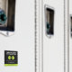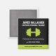 A bold promotional magnet for a personal trainer, gym owner or coach. A silhouette of a green dumbbell stands out against the rich black pinstripe background. Your main contact information goes below with your website or other information standing out in the lime green bar at the bottom. Available in alternate colours with matching products.
