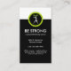 Here is a bold and modern two side personal training business card template designed with a cool fitness emblem and a black, white, and green colour scheme that stands out. Includes a referral discount feature on the flip side of the card so you're not wasting business card space.