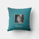 Personal Two Custom Photos and Custom Text on Teal Cushion