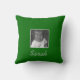 Photos are square, and will be outlined by a tiny white border. The main frame on this version is coloured green, and there exist similar pillows with frames in various colours.