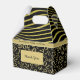 Easily personalise the text on this black and gold 70th birthday theme with the templates supplied. This design on the bottom half is a black and gold abstract background of the number seventy (70) repeated in varied sizes and angles in an all-over collage print. The top half is abstract wavy lines. There is a gold band around the top and plaque in the centre for your text. Use the easy templates to add your own words, name initial, or monogram. A great idea for party favours for your seventieth birthday party.